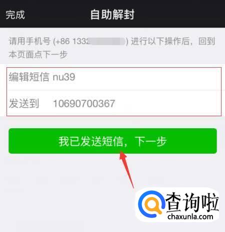 发送完短信验证码后点击【我已发送短信,下一步】。