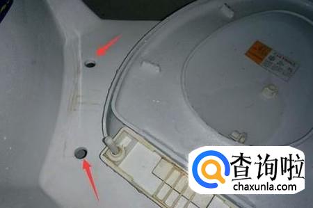 将两边的两颗螺母分别旋下来,手就能旋下来,并不是很紧。之后盖子松了,就能将整个马桶盖拿下来了。可以看到两个孔。