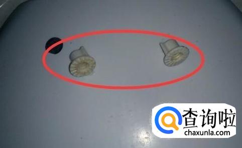 可以看到新买的马桶盖有两对塑料螺丝的配件,将螺丝从塑料筐中穿过,注意方向不要搞错了。如果不知道方向请参考拆下来的旧盖子。