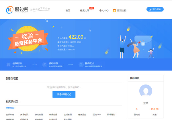 酷知网:酷知网是一个回答问题赚取赏金的平台。在家无聊的话,可以编写酷知网。既能打发时间还能赚钱。