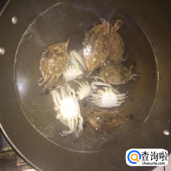 然后把烫好的螃蟹也一起倒入锅中。