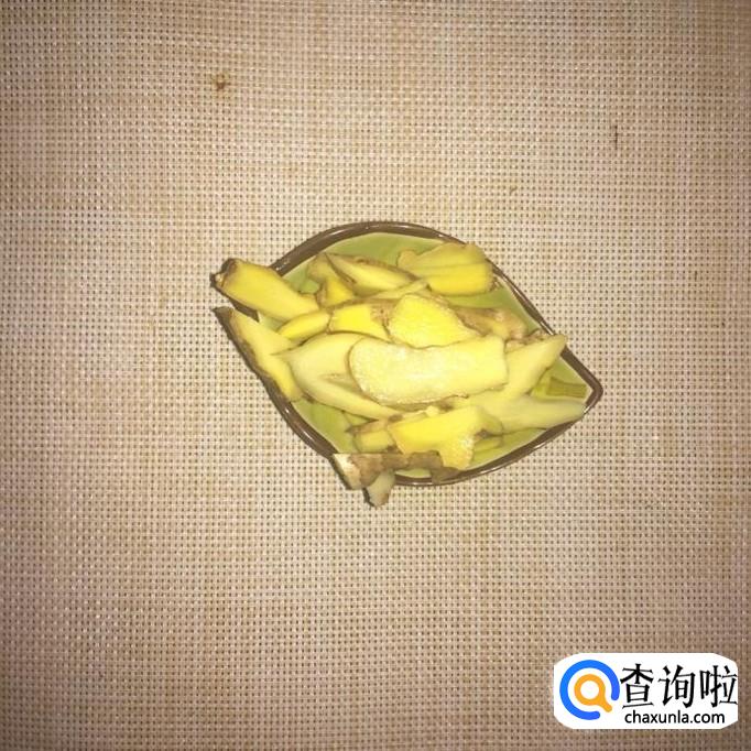 接着把生姜切成薄片,倒入锅中。注意切生姜的时候,切得越薄越好。