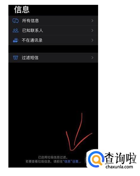 它类似邮件系统的垃圾收件箱,但没有单独放在信息功能下,点击最下的“信息”设置,就会进入这个垃圾收件箱。