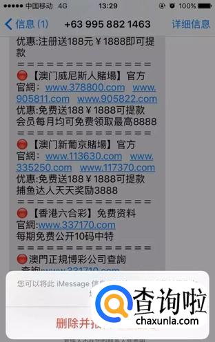 b 之前向收件人发送过信息、但收件人已删除了之前对话的用户(就是曾经拒绝过的人)发来的iMessage信息;——这两种都是“澳门赌场”那种垃圾信息常见的情况。 - 05