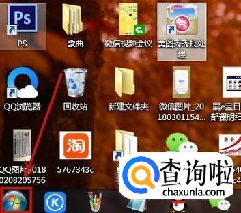 首先在我们的电脑桌面上找到开始并点击它,如下图所示。