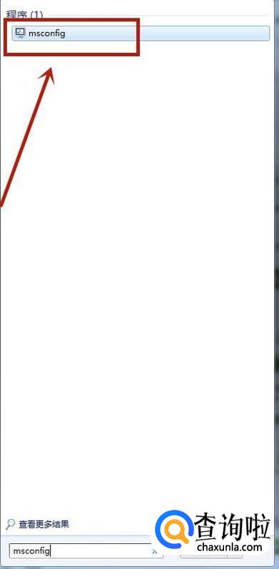 然后点击屏幕上方的msconfig程序,如下图所示。