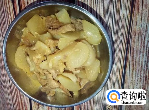 大火一直炖到水干,然后收汁,即可装盆,享受美味的萝卜炖后腿肉啦。