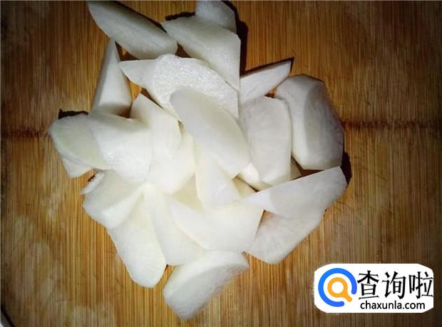 后腿肉、白萝卜、姜、蒜头、花生油、盐、酱油、料酒