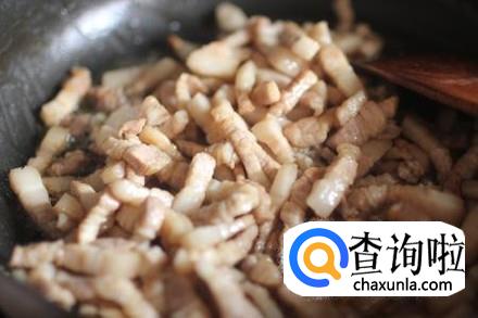 五花肉尽量不要带皮,先把五花肉皮去掉,然后切成丁,也不要太小块,比大拇指小一点就差不多了,长度跟大拇指差不多大。生姜也切成小片,备用。