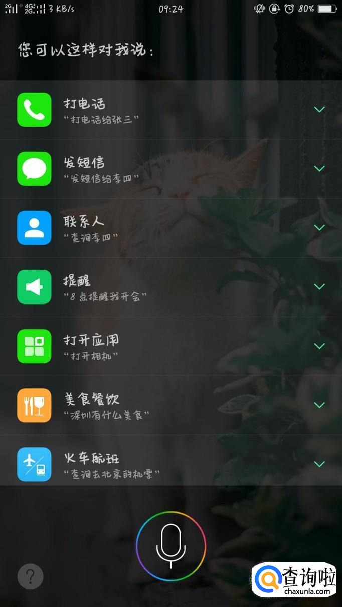点击语音助手里面左下角的“?”符号,即会出现语音助手可帮助操作的选项。