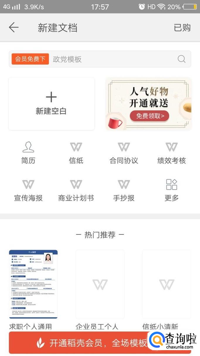 点击后,跳转到以下界面,点击上方的“新建空白”。