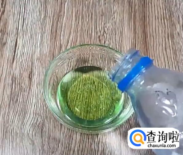 接着,在玻璃器皿里倒入面膜胶。