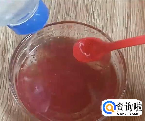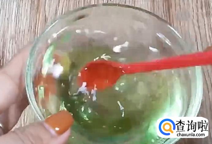 继续搅拌,一直搅拌到指甲油与面膜胶和水融合。