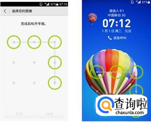 如果你设置了画图解锁,那么你打开手机的时候,屏幕上会提示你画出相应的图案来解锁,你只需要画出相应的图案,不需要密码也可以解锁。