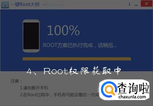 在root过程中,注意不要中断手机操作,否则可能会引起手机失灵,导致root失败,耐心等待十分钟左右,手机root就完成了。