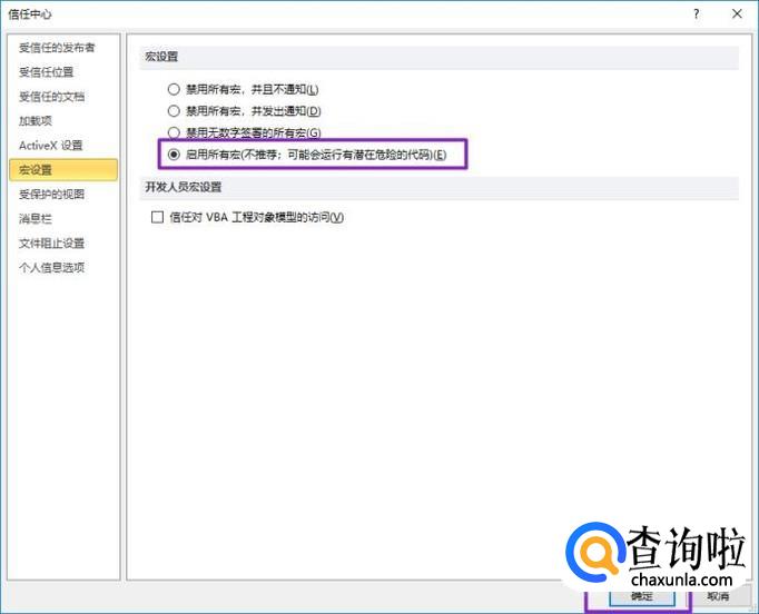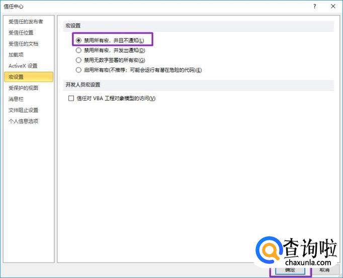 弹出的界面,在宏设置中我们选择第一条或者第四条,然后点击确定,就都不会显示了。