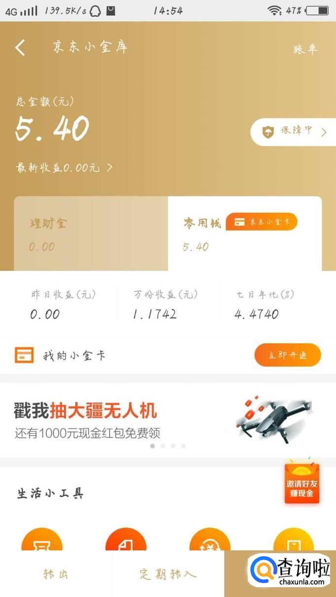 进入到主界面过后,点击“京东小金库”