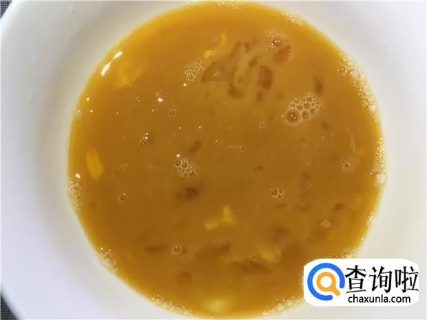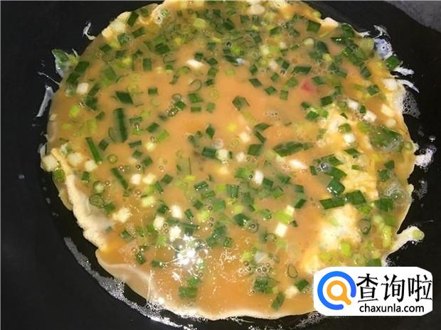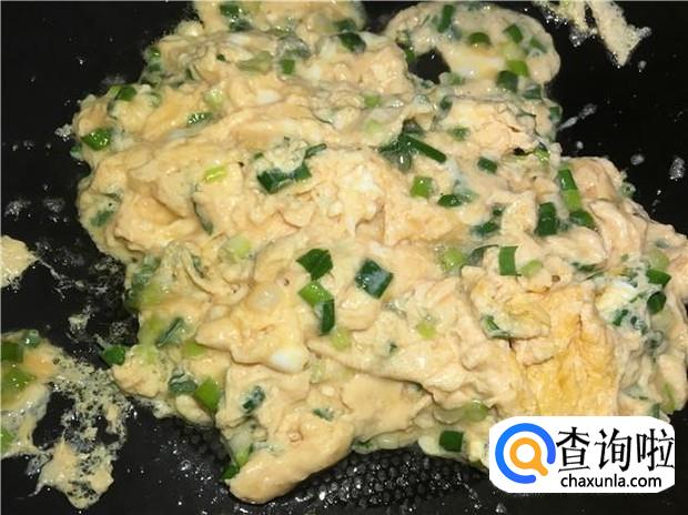 锅里下少许油,油热后,倒入鸡蛋液,先把鸡蛋炒熟,用铲子弄碎。