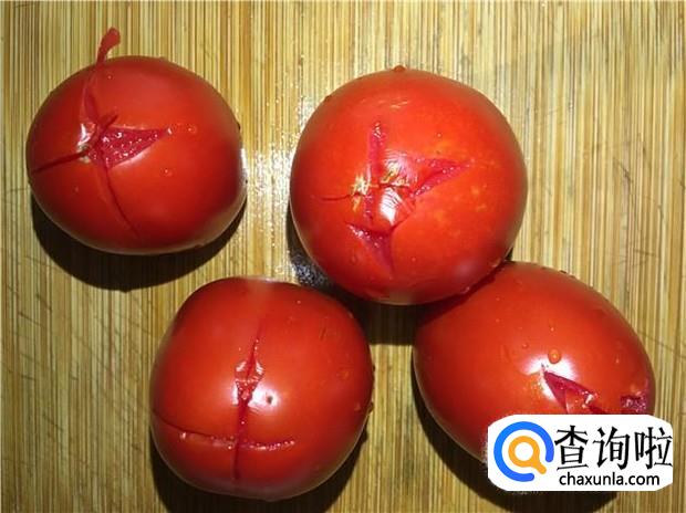 水开后,把番茄放到开水中,烫3分钟,让番茄均匀受热。