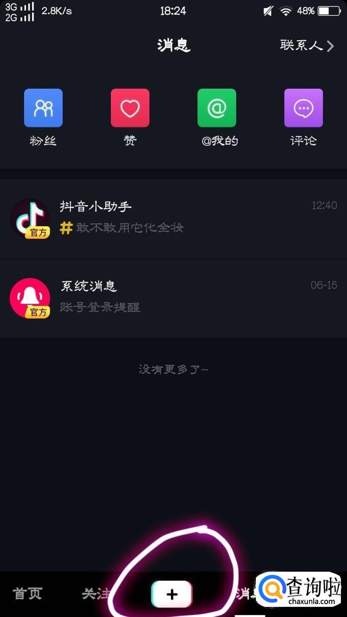 接下来,我们打开抖音以后,点击屏幕下方的“+”,并点击进入