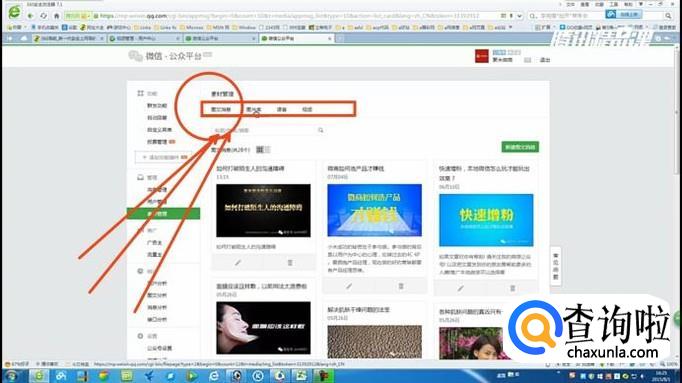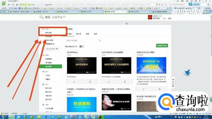 第五步,点击如下图中的的“群发管理”在选中你所编辑完毕的文章后,就能群发给关注你的小粉了