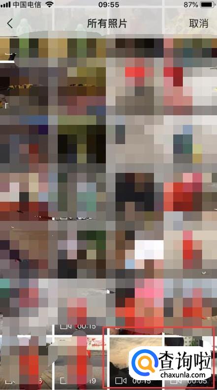 进入相册后,选择你想要上传的视频,这里选择右下角已经拍摄好的视频。