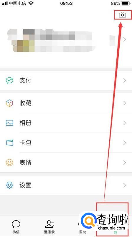 进入微信后,点击右下角“我”,再选择右上角相机按钮。
