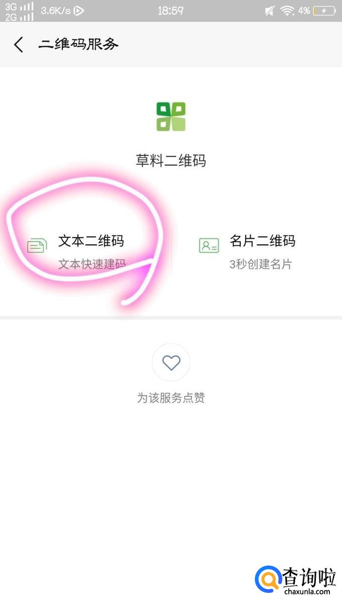 最后,我们点击完“草料二维码”后,又将进入另一个页面,我们点击“文本二维码”点击完成后,并输入文字内容,并点击屏幕下方的“生成二维码”即可