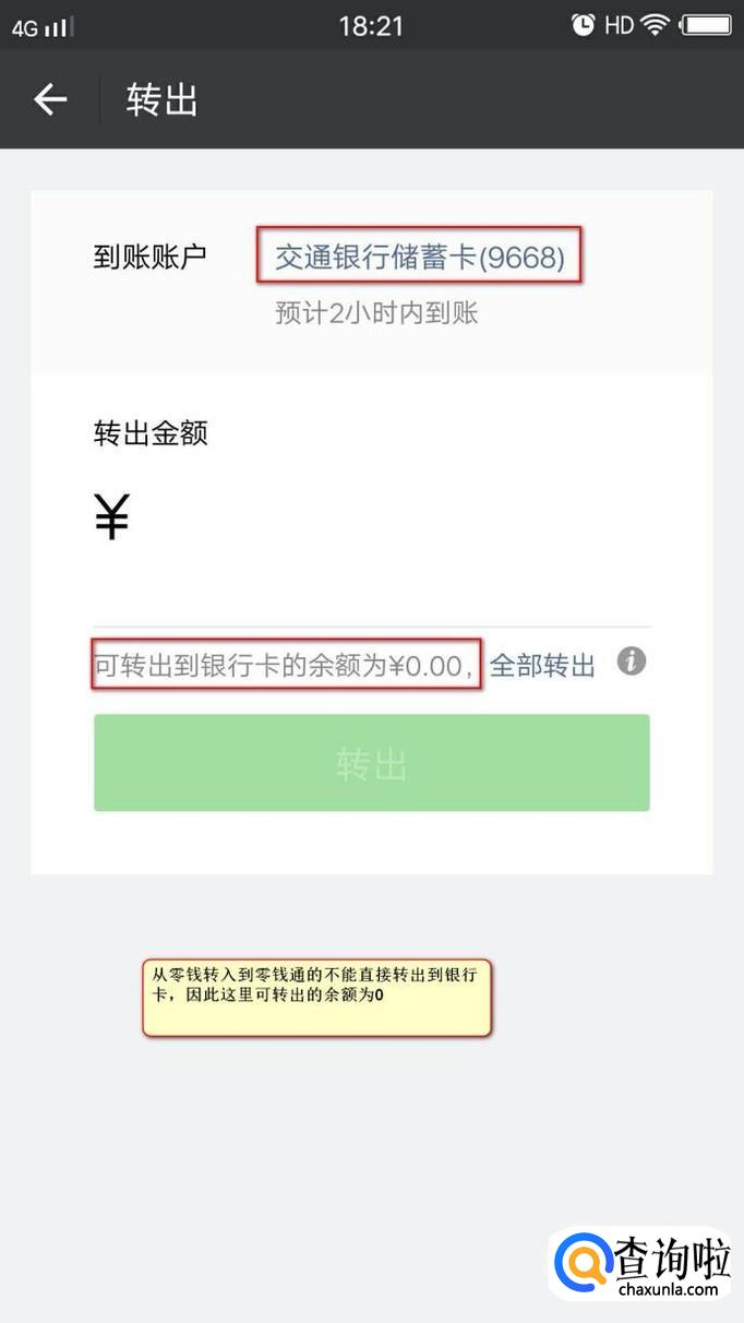 转入完成后我们试试转出,从下图可以看到我们刚刚从银行卡转入到零钱通的钱全部可以转出到银行卡,而且免手续费。