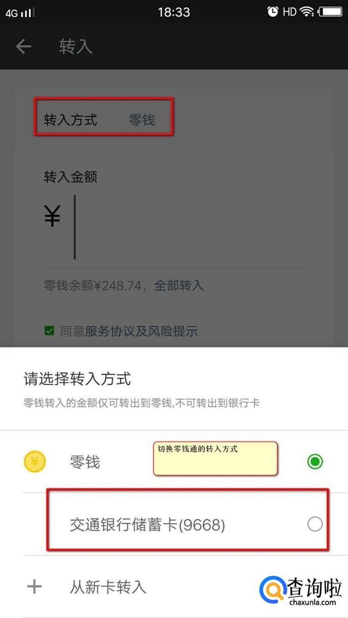 从银行卡转入零钱通的钱,再从零钱通中转出是不收手续费的,这一点帮我们解决了大问题,我们不仅可以将钱存入零钱通获取到收益,零钱通中的钱还可以用于日常生活中的消费,一举两得。从银行卡转入到零钱通的方式和从零钱转入差不多,我们只需要在上述步骤4转入的时候切换转入方式即可,我们选择用银行卡转入,然后输入转入金额,该金额需要自己手动输入。