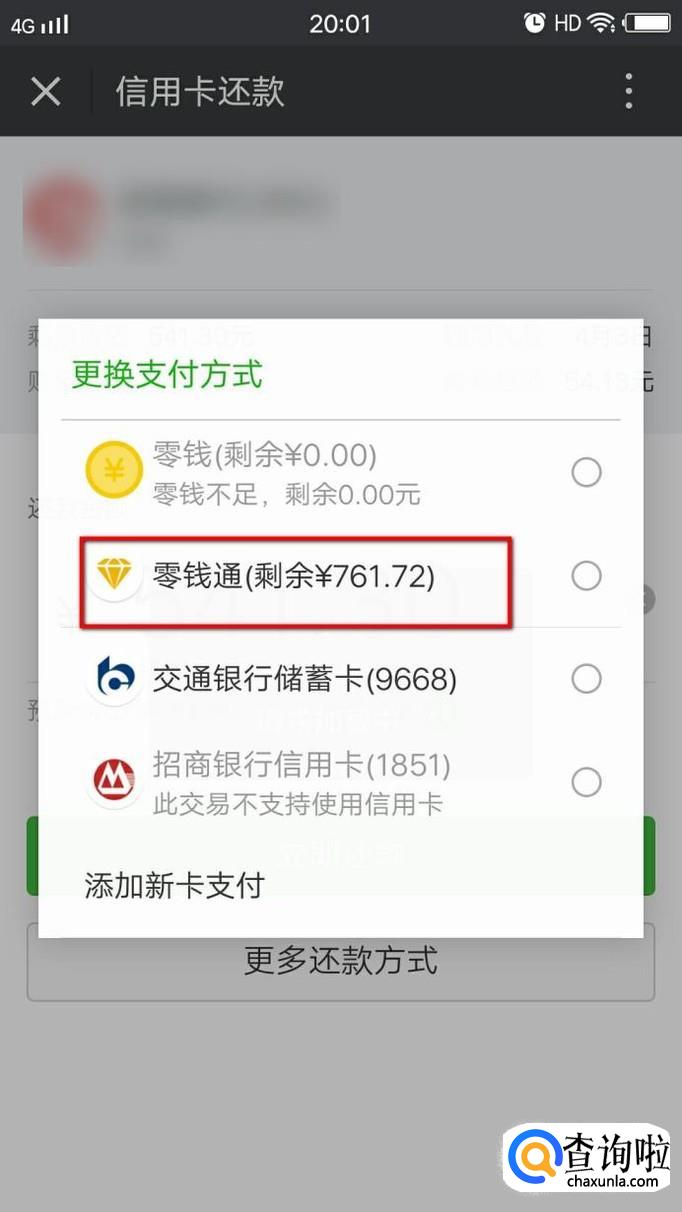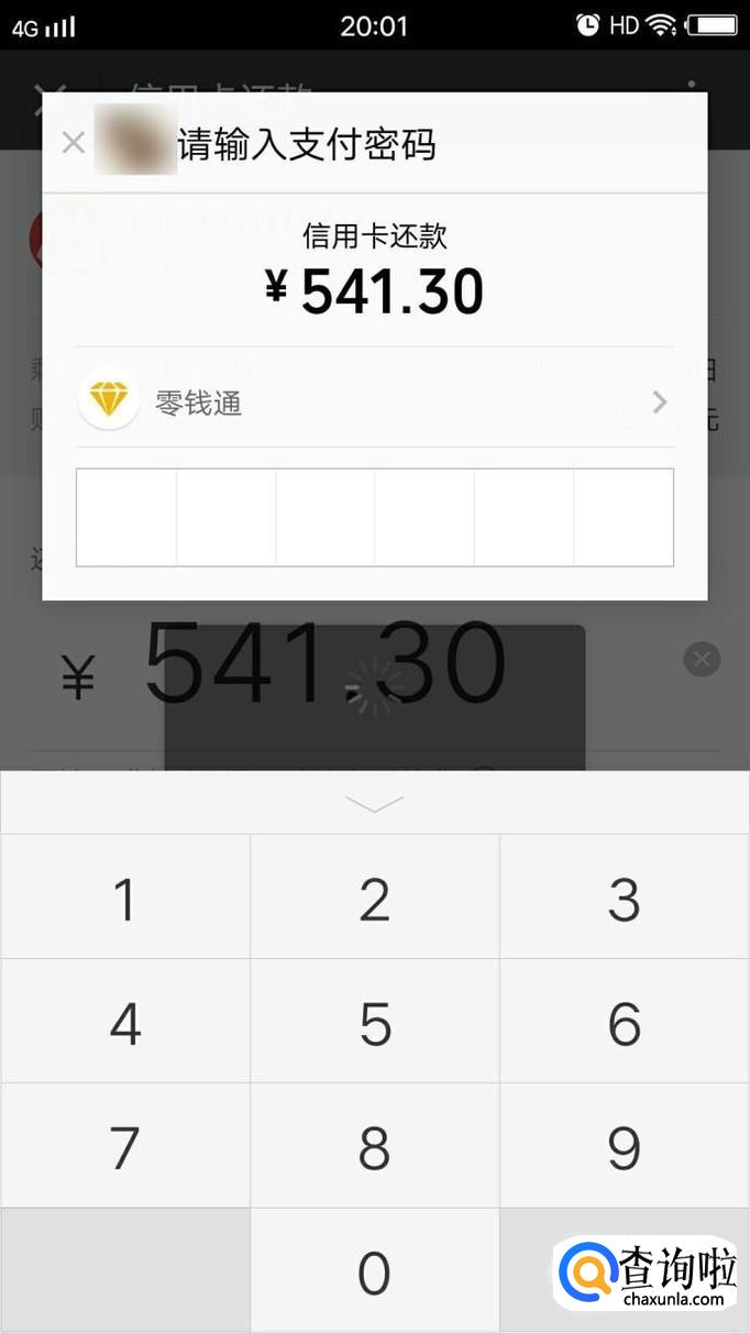 接下来我们点击“立即还款”按钮,可以在还款页面切换还款的方式,我们选择使用零钱通进行还款,然后输入付款密码进行支付即可。