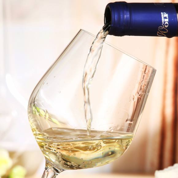 而“干白”是用葡萄皮红汁白或皮汁皆白的葡萄为原料,将葡萄先拧压成汁,再将汁单独发酵制成。由于葡萄的皮与汁分离,而且色素大部分存在于果皮中,故白葡萄酒色泽淡黄,酒液澄清,透明,含糖量高于红葡萄酒,酸度稍高,口味纯正,甜酸爽口。