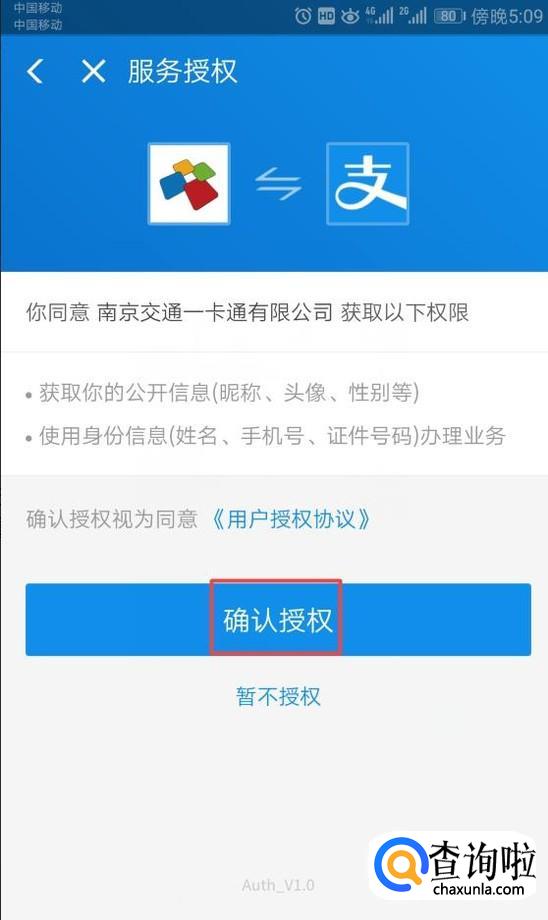 弹出的界面,我们点击确认授权,之后就会出现一个二维码,由于支付宝禁止截图,所以此处无法上传该图片,之后我们就可以扫码进行乘坐公交车和地铁了。