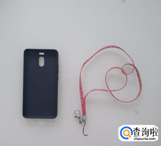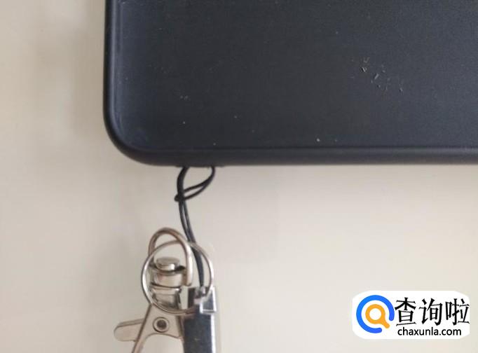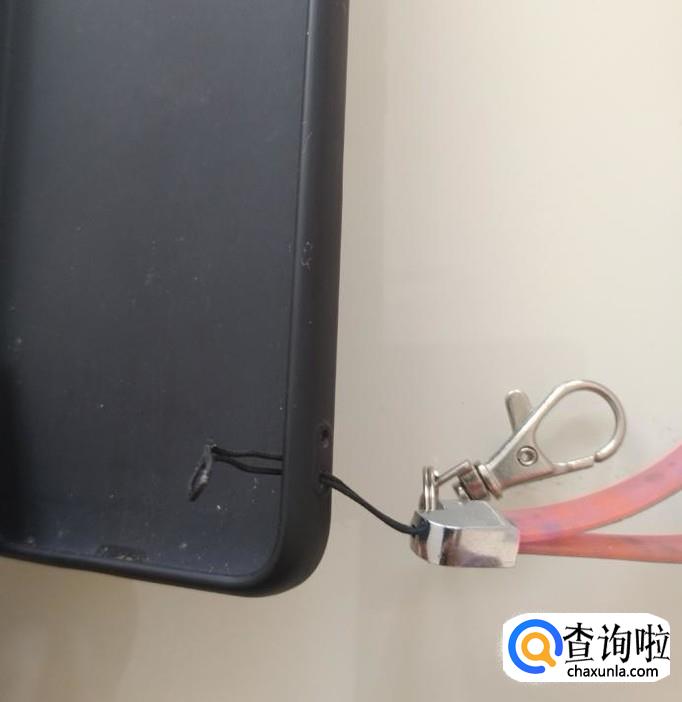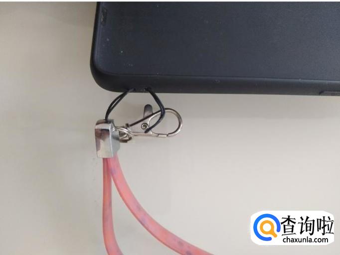手机壳上有一个挂绳孔,先将挂绳从一个挂绳孔中穿过去。