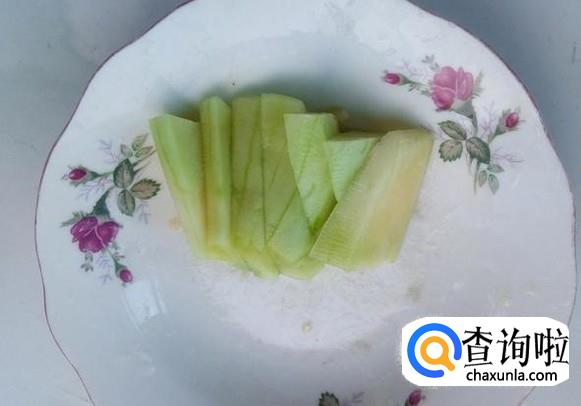 把水果切成下图的细条或者小段。
