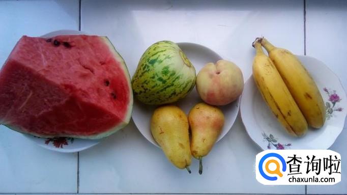 西瓜、甜瓜、鸭梨、桃子、香蕉