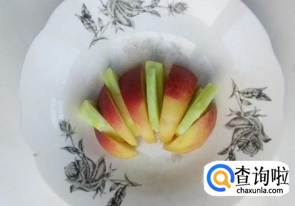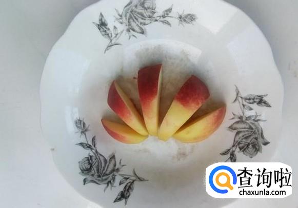先将油桃摆在盘中,然后把甜瓜摆入油桃的缝隙中。