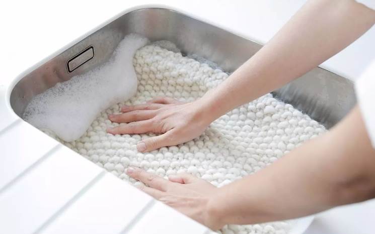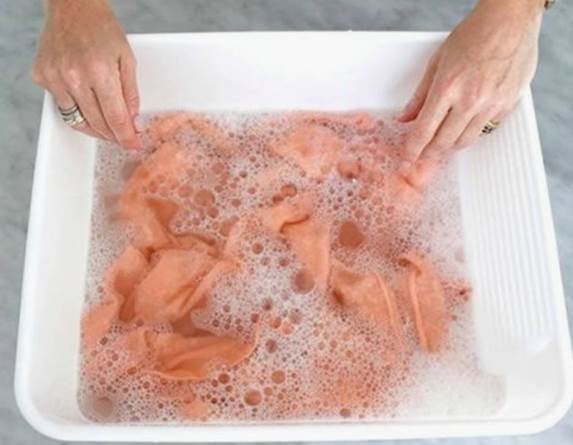 第一步:切忌洗衣机,及时最轻柔的方式也不行。必须手洗;水温不宜过高,以35摄氏度左右为佳,双手轻压,不要揉搓,蛮拧等大力手法。