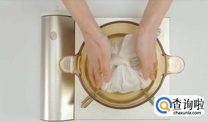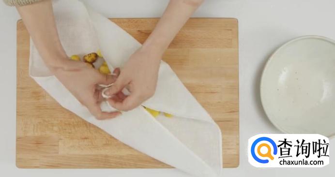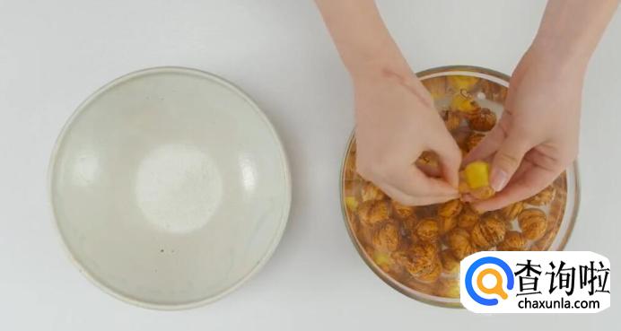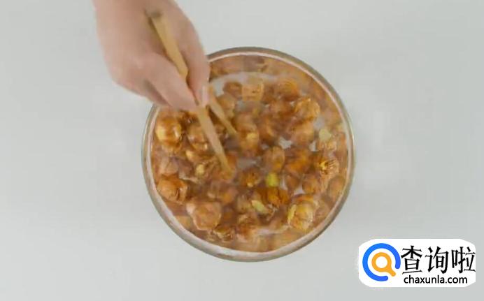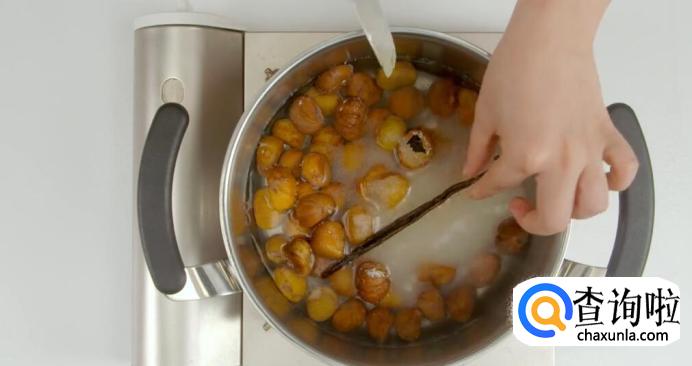栗子浸开水5分钟。