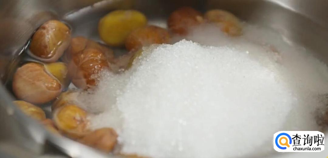 加入净水和白砂糖(白砂糖和栗子的比列为1:1)。