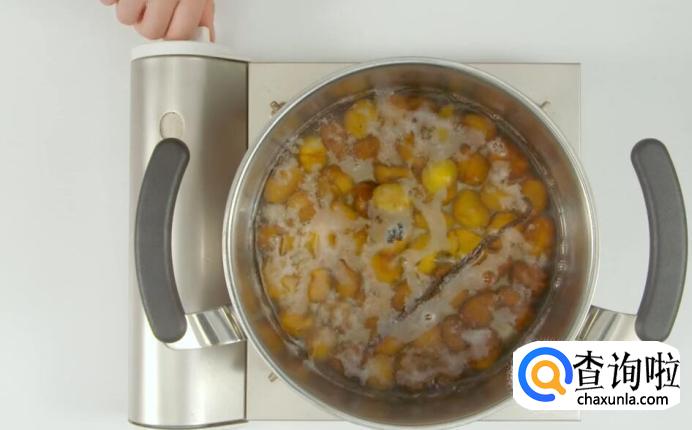 在加入小苏打,去除栗子的涩味。