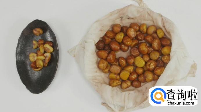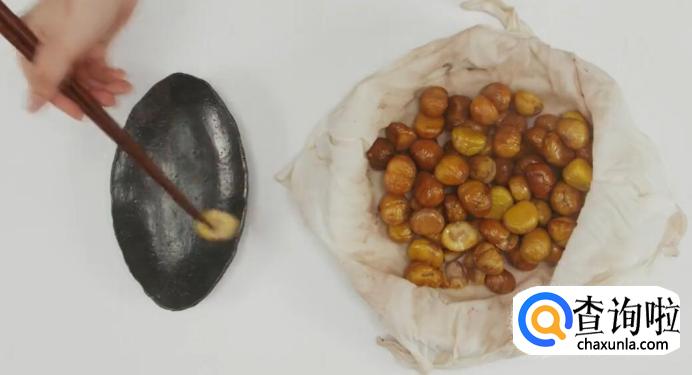 再挑出破碎的栗子。