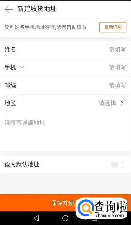 在这里填写收货人的信息资料,最后不要忘记点击“保存并使用”,不然又得重新输入一次。