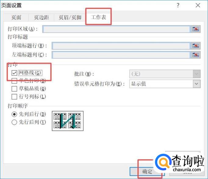 弹出的界面,我们点击工作表,然后将网络线勾选上,之后点击确定就可以了。