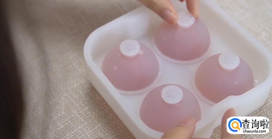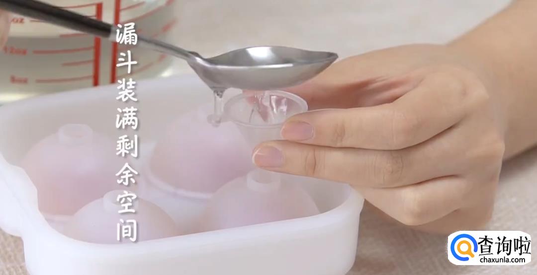 将模具盖子盖上,用漏斗将模具填满,然后塞上塞子放入冰箱冷藏30分钟。