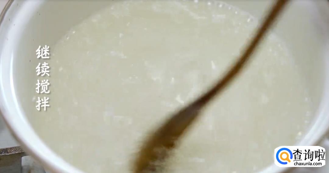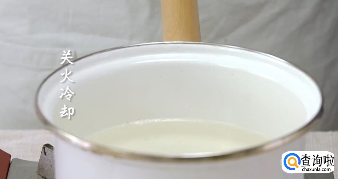 再将剩下的凉水倒入,开火继续搅拌均匀后关火静置放凉。
