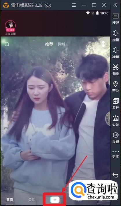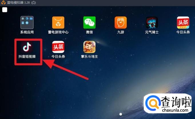 然后再下载手机版的抖音软件,并安装到雷电模拟器上。打开抖音。如图。