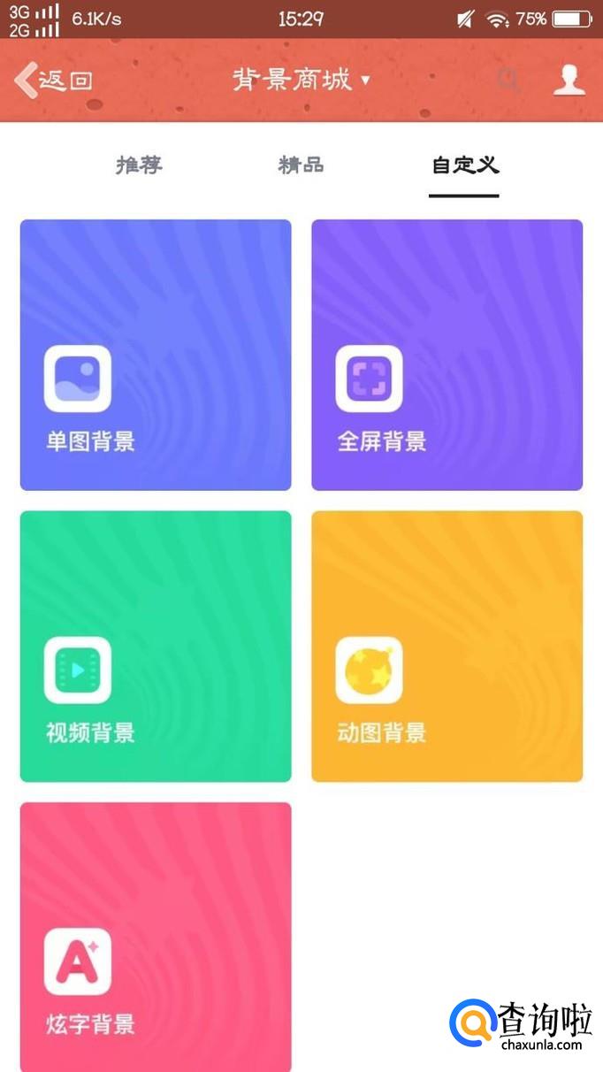 最后,大家点击屏幕上任何一个地方后,大家可以在商城中选择,也可以自定义,如何自定义的话,大家可以选择半屏,全屏,大家选择好以后,添加照片即可