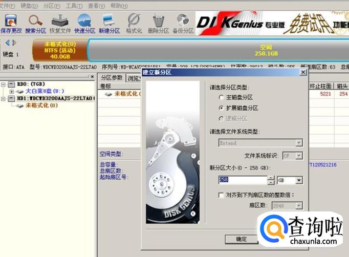 剩下的空间上右键单击选择“建立新分区”,分区类型选“扩展分区”,点“确定”。