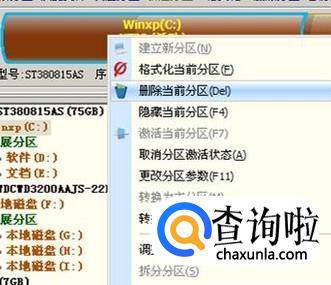 之后因为原来的硬盘安装有系统,需要把它也格式化。在老硬盘空间上右键单击,在弹出的菜单点“删除当前分区”。同样的操作删除此硬盘的所有分区。